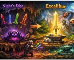 はじめに テラリアの世界において、中盤から終盤にかけての攻略を左右するのは「強力な剣」の存在です。特にノーマルモードの集大成である「ナイトエッジ」と、ハードモード突入後の象徴である「エクスカリバー」は、多くのプレイヤーが […]