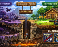 はじめに テラリアのワールドを冒険していると、避けて通れないのが「不浄・真紅・聖なる大地」による汚染の拡大です。特にハードモード突入後は、一気に広がる汚染スピードに絶望を感じるプレイヤーも少なくありません。「せっかく作っ […]